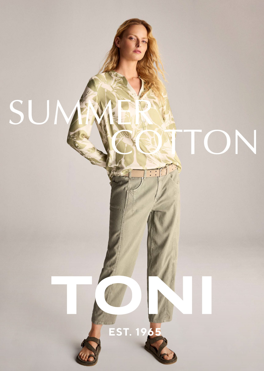 Zu den wichtigsten Trendthemen der Saison Frühjahr/Sommer 2026 halten wir für Sie kostenlos den passenden Content in Form von Images und Anzeigenvorlagen im TONI & Relaxed Account der Fashion Cloud bereit. Fragen Sie dazu einfach Ihre:n Außendienst-Repräsentanten:in.
